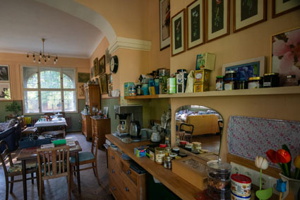 Das Frühstück im schönen, großen Gründerzeitsalon des Hauses hat schon viele meiner Gäste begeistet. Hier ist der Ort, wo auch Touren und Tagesgeschehen geplant werden. Es gibt viel Platz und Ruhe im Ambiente aus lang vergangenen Jahrzehnten.